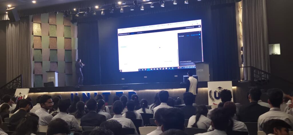 From 10:30 AM to 1:00 PM, senior students (BCA, BBA, B.Tech, MBA) presented their academic and tech-driven projects in dedicated labs. These presentations highlighted the creativity, research capability, and application-oriented learning of United University students. IBM Day, United University – Te…