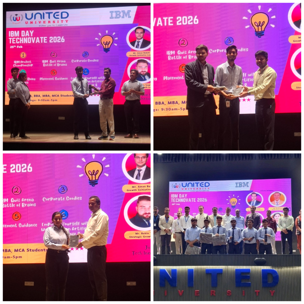 IBM Day at United University was organized as part of Technovate 2026, a dynamic one-day immersive program aimed at equipping students with cutting-edge skills in Generative AI, data dashboards, and project presentation excellence. The event brought together students from B.Tech, BCA, BBA, MBA, and MCA programs under one roof to participate in a day filled with learning, competition, and recognition.